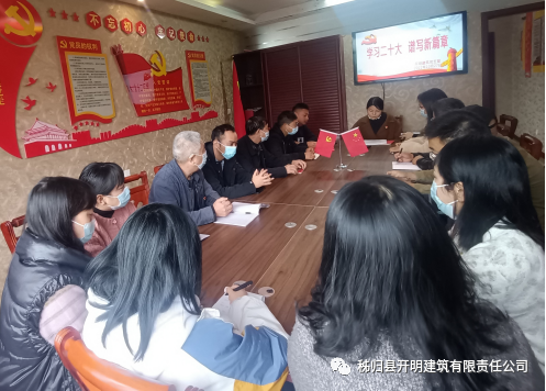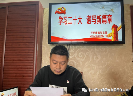 2022年10月27日上午 ,秭歸縣開明建筑有限責(zé)任公司黨支部開展了“學(xué)習(xí)二十大,譜寫新篇章”主題黨日,公司全體黨員及發(fā)展對象、部分管理人員參加了此次活動。