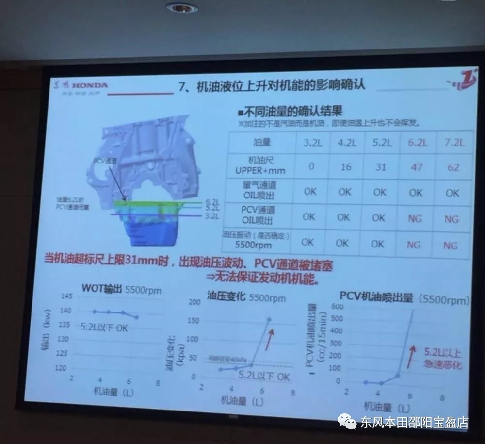 報(bào)告中稱,當(dāng)機(jī)油超標(biāo)尺上限31mm時(shí),出現(xiàn)油壓波動(dòng)、PCV通道被堵塞,無(wú)法保證發(fā)動(dòng)機(jī)技能。從汽油稀釋率和機(jī)油增加量的關(guān)系來(lái)看,而增加到30mm以內(nèi)機(jī)能保障是沒(méi)有問(wèn)題的,超過(guò)21mm時(shí)報(bào)警燈可能發(fā)出提醒。