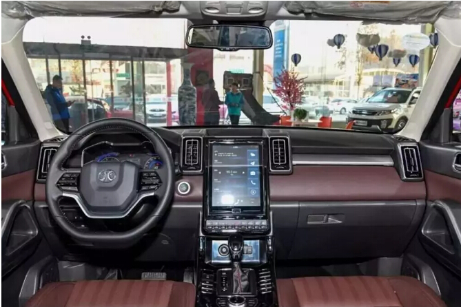 內(nèi)飾的材質(zhì)和設(shè)計倒是配得上車型的名稱和外觀,因為我們在車內(nèi)能看到皮質(zhì)包裹的前臺,超大中控屏幕,寬厚的擋把區(qū)等實力元素,還有就是空調(diào)出風(fēng)口漢字造型霸氣十足。