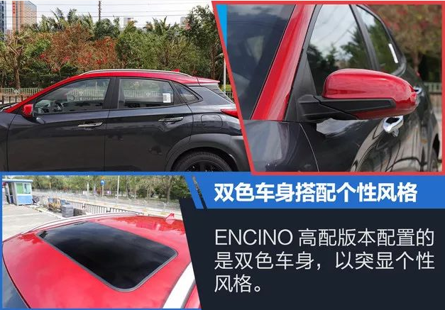 外觀小結:據了解,北京現(xiàn)代ENCINO高配車型采用的是雙色外觀,而中低配版本則采用的是同色外觀。編輯實拍的僅為高配而非頂配版本,新車通過分離式大燈設計,亮黑輪圈,雙色車頂以及外后視鏡營造出時尚個性的風格。而在我看來,緊致的車身比例以及扁平的輪胎配置是最能凸顯ENCINO運動性能的一面。