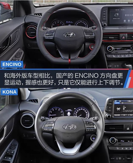 北京現(xiàn)代ENCINO的外觀讓人驚艷,簡潔設計的內飾也沒有太多復雜的線條元素或者造型,新車僅通過雙色裝飾來調節(jié)車內氛圍。相對于海外版車型,國產的ENCINO更將該車的性能外顯,運動型方向盤就是最好的窗口。