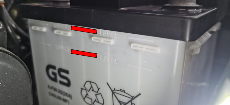 從電池側(cè)面檢查液位,確認(rèn)液位在UPPER LEVEL(最高液位)與LOWER LEVEL(最低液位)之間,當(dāng)液面低于最低液位時(shí),請(qǐng)及時(shí)前往一汽豐田經(jīng)銷店,補(bǔ)充專用電解液,并使用專用蓄電池檢測(cè)儀進(jìn)行測(cè)試,發(fā)現(xiàn)異常后及時(shí)更換。