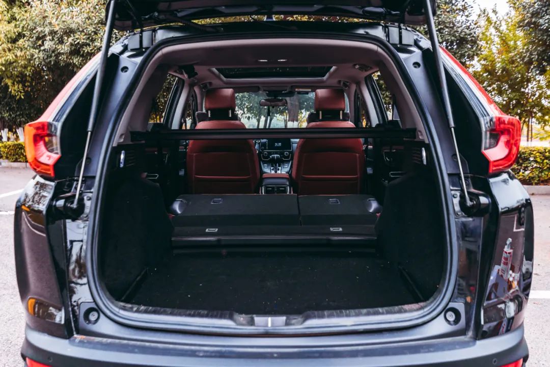 車內(nèi)的空間映入眼簾,寬敞兩個(gè)字足以形容,不需要多余的字眼,就是寬敞。前排的空間和視野很開闊,得益于SUV較高的底盤,駕駛視野對于行車更為安全。后排空間也是如此,以我自己舉例,身高176cm,膝蓋距離前排座椅兩拳多,即便坐的端正頭距離車頂也有一拳多空余,后排座椅可以放倒,進(jìn)一步提高后備廂的可利用空間,哪怕是在車?yán)锼挥X,這樣的空間也足夠,作為家用真的再合適不過了。