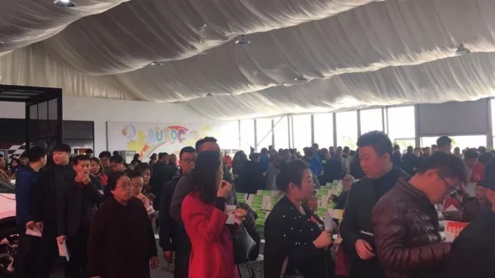 現(xiàn)場參與活動(dòng)的車友們有序排隊(duì)等待報(bào)名