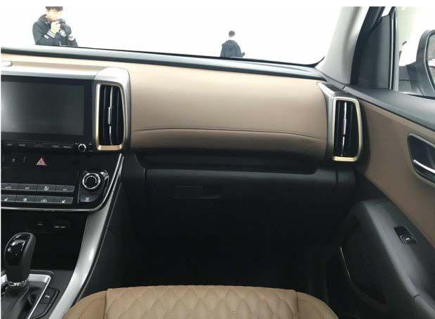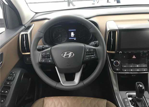 新一代ix35的內(nèi)飾在設(shè)計(jì)和布局與目前我們所見到的北京現(xiàn)代車型略有不同,中控臺(tái)“T”字區(qū)域采用了更加平直的設(shè)計(jì)理念,在氣質(zhì)上同樣顯得穩(wěn)重了不少,豎直的空調(diào)出風(fēng)口采用了暗金色作為點(diǎn)綴,中控臺(tái)采用了皮質(zhì)覆蓋,更加凸顯質(zhì)感。
