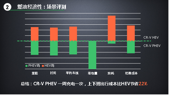 純粹作為上下班通勤用,且一周只充一次電。這對于家里或單位沒有固定充電樁的車主來說,應(yīng)該是最常見的情況了。測試的結(jié)果是,CR-V銳·混動e+比CR-V銳·混動成本降低22%。