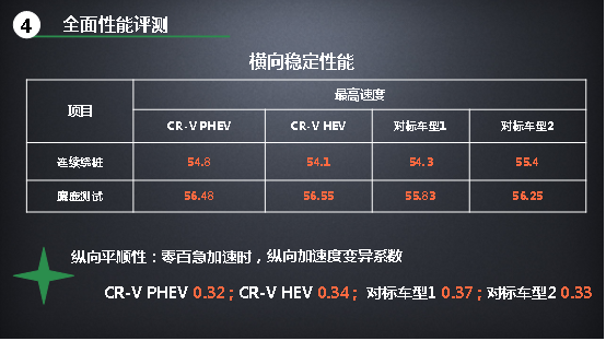 關(guān)于這一點(diǎn)我們的解讀是,相對于打雞血式的急加速,Honda對于CR-V銳·混動e+的穩(wěn)定性和舒適性更為看中。這其中,剎車距離、麋鹿測試成績都是與主動安全性密切相關(guān)的,它體現(xiàn)出車輛避免事故發(fā)生的能力。而縱向平順性和降噪性能等,則均與駕乘舒適性有關(guān)。