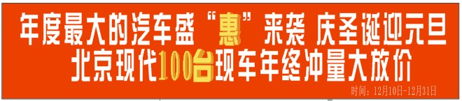 12月份是購車的好時(shí)機(jī),12月份也是廠家促銷力度最大的時(shí)候,時(shí)值圣誕與元旦雙節(jié)來臨之際,在這個(gè)時(shí)候?yàn)樽约簽榧胰速徶靡惠v心愛的車會(huì)是一個(gè)不錯(cuò)的選擇。為了慶祝圣誕元旦的到來,北京現(xiàn)代4S店準(zhǔn)備了無數(shù)雙節(jié)大禮送個(gè)廣大市民,只要來到我們店,禮品送給您??!同時(shí)為了完成北京現(xiàn)代年底銷量任務(wù),我們將實(shí)行零利潤銷售沖量大放價(jià),優(yōu)惠程度超乎您的想象,想要買車的您還在等什么呢!