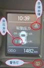 2、短按儀表上左按鍵,查找胎壓異常的輪胎,在儀表中間顯示屏上輪胎旁邊顯示“!”符號,說明該輪胎胎壓缺氣;找到對應的車輪,并排除輪胎故障